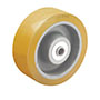 Polyurethane in the World. Extremely Durable. High Load Capacity. Ergonomic - Easy to Roll. High Abrasion Resistance. Hardness: 95 Shore A. Wheel Face: Flat. Finish: Orange/Brown tread on cast iron core. Note: Vulkollan is a registered trademark of Bayer MaterialScience.