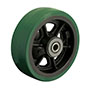 Composed of a polyurethane elastomer, open cast or injection molded, on clean, close tolerance cores. Polyurethane tread is chemically bonded to a cast iron core. High capacity polyurethane protects floors, is non-marking and delivers quieter